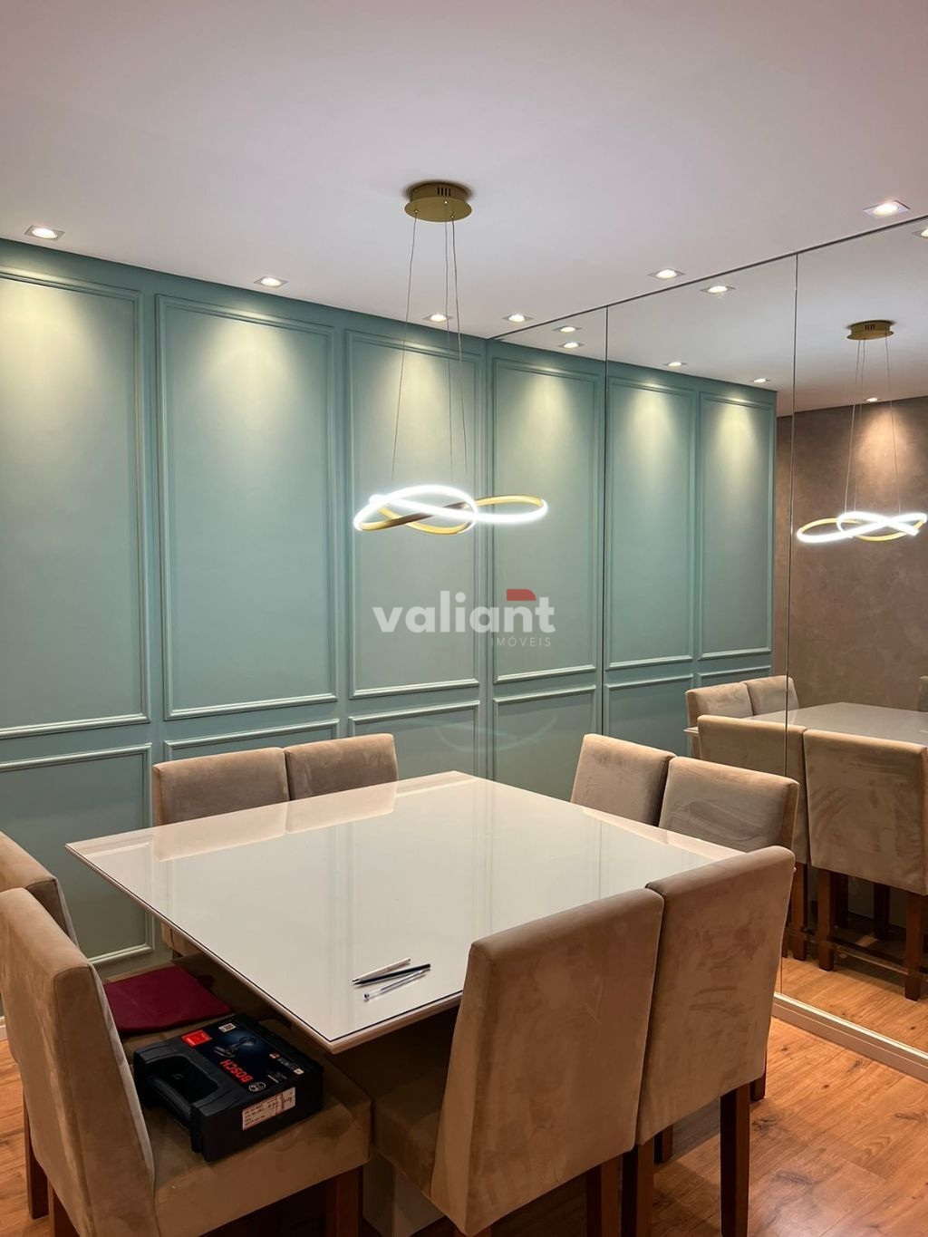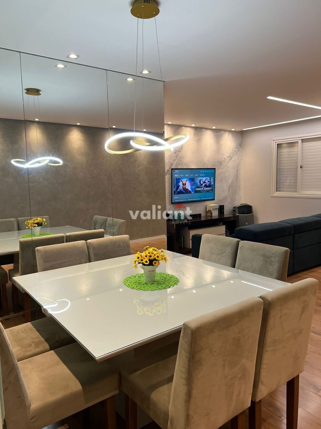 Sala jantar mesa oito lugares, sala de visita, varanda envidraçada integrada com a sala, 03 banheiros no total, cozinha ampla, área de serviço ampla com banheiro, 02 vagas de garagem.