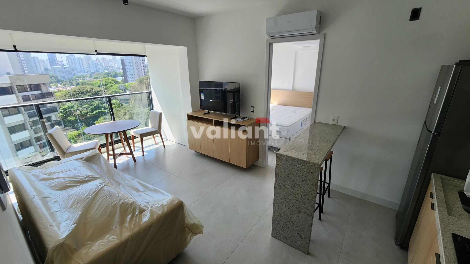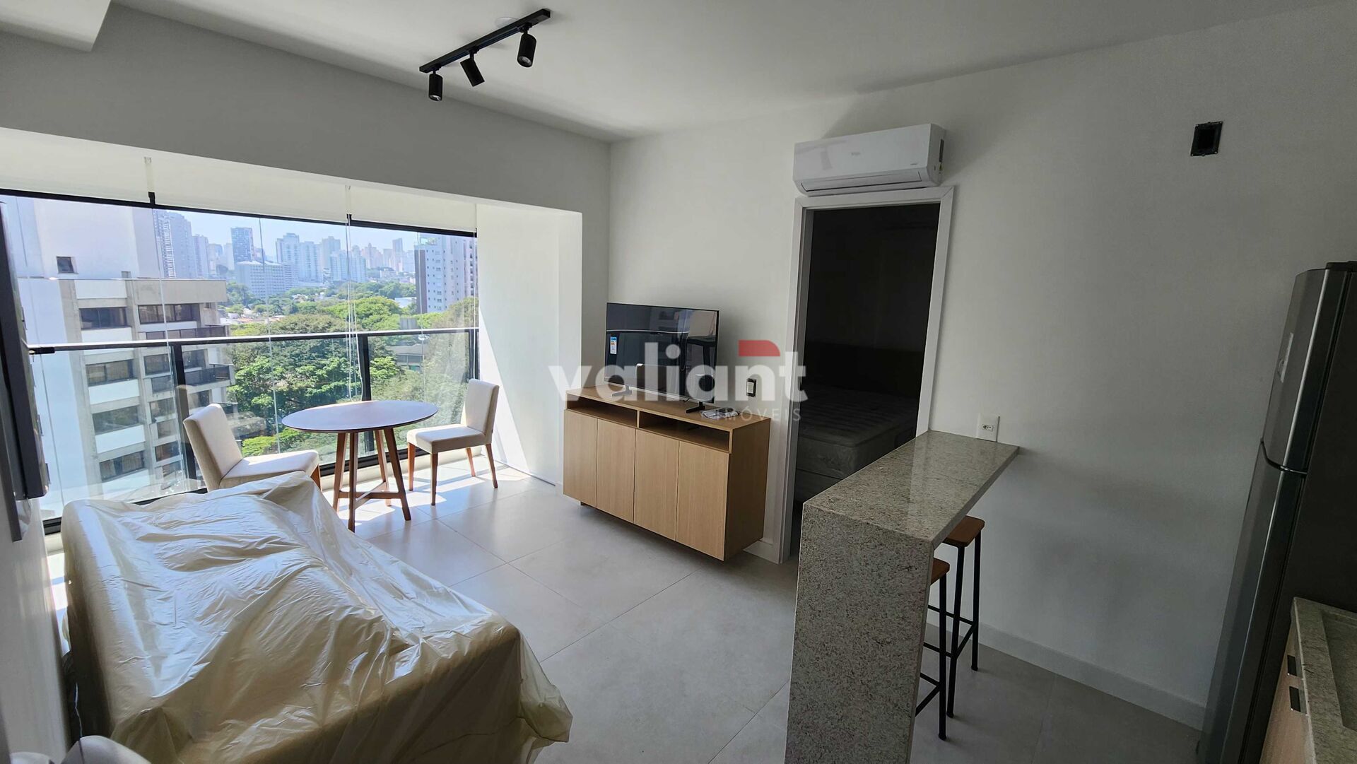 Prédio Novo. Apartamento equipado e mobiliado. Andar Alto. Vista Livre. Sol da manhã. 35,52m².